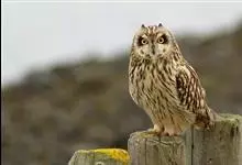 短耳鸮又名小耳木兔、田猫王、夜猫子等,是鸮形目鸱鸮科耳鸮属中小型猛禽动物。成鸟面盘显著,眼周黑色;眼先及内侧眉纹灰白色,面盘余部棕黄色杂以黑色细羽干纹;耳簇羽短小而几乎不外露,…全部>>