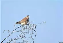 红隼:是隼科、隼属的小型猛禽之一。体重173-335克,体长305-360毫米。翅狭长而尖,尾亦较长,外形和共同爪隼非常相似。雄鸟头蓝灰色,背和翅上覆羽砖红色,具三角形黑斑;腰、尾上覆羽和尾羽蓝灰色,…全部>>