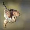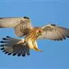 红隼:是隼科、隼属的小型猛禽之一。体重173-335克,体长305-360毫米。翅狭长而尖,尾亦较长,外形和共同爪隼非常相似。雄鸟头蓝灰色,背和翅上覆羽砖红色,具三角形黑斑;腰、尾上覆羽和尾羽蓝灰色,…全部>>