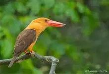 赤翡翠:是佛法僧目翠鸟科的鸟类。共有10个亚种。体长25-27厘米,体重76-77 克。头、颈、背、腰尾上覆羽、尾羽棕赤色,是翡翠亚科中分布最北的成员,虽然其主要分布区位于东南亚地区,…全部>>