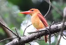 赤翡翠:是佛法僧目翠鸟科的鸟类。共有10个亚种。体长25-27厘米,体重76-77 克。头、颈、背、腰尾上覆羽、尾羽棕赤色,是翡翠亚科中分布最北的成员,虽然其主要分布区位于东南亚地区,…全部>>