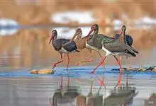 黑鹳是鹳形目鹳科鹳属鸟类,俗称乌鹳、钢鹳、老鹤。黑鹳头、颈和脊均呈黑褐色,故名黑鹳。黑鹳上体羽黑色、并带有绿紫色金属光泽,胸腹部羽白色;嘴、腿均红色;两性相似;成鸟嘴长而直,基部较粗,…全部>>