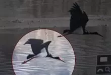 黑头鹮鹳:大型涉禽。体长102厘米,翼展150-175厘米,体重2050-2640克。寿命10年。嘴长而粗壮,飞时头颈伸直。雌雄相似。成鸟上体白色,下体白色。翼下覆羽有黑色横带,具绿色光泽和白色羽缘。…全部>>