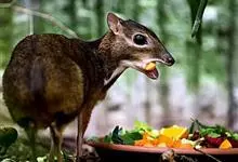 鼷鹿,别名小鼷鹿,共38个亚种。体形略比野兔大,体重1.3~2.0kg,体长420~630mm,肩高约200mm,是仅次于蹄兔目成员最小的有蹄类动物,也是鼷鹿科种体型最小的一种。面部尖长,无角,…全部>>