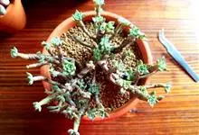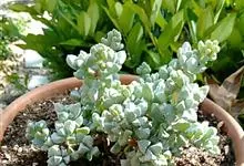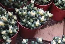 白凤菊,别名姬鹿角,番杏科、覆盆花属,原产地位于南非及美国部分沿海地区。喜温暖干燥和阳光充足的环境,耐旱,怕水湿,无明显休眠期。多年生肉质植物,大株植物呈亚灌木状,茎分枝匍匐或直立,老枝茎干呈棕红色,…全部>>
