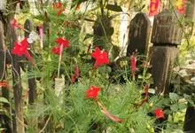 茑萝是旋花科番薯属属一年生柔弱缠绕草本植物。叶卵形或长圆形,羽状深裂至中脉,基部常具假托叶;花序腋生,由少数花组成聚伞花序,花直立,花柄较花萼长,在果时增厚成棒状;萼片绿色,椭圆形至长圆状匙形,…全部>>