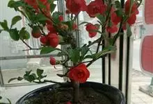 贴梗海棠Nakai)是蔷薇科、木瓜海棠属植物。落叶灌木,高达2米,枝条直立开展,有刺。叶片卵形至椭圆形,稀长椭圆形,长3-9厘米,宽1.5-5厘米。花先叶开放,3-5朵簇生于二年生老枝上。…全部>>