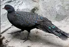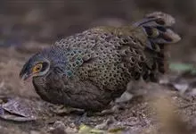 灰孔雀雉:雄鸟体长50-67厘米,体重456-710克;雌鸟体长33-52厘米,体重460-500克。雄鸟全身羽毛黑褐色,…全部>>