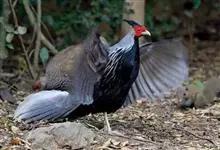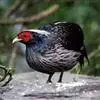黑鹇是鸡形目雉科目鹇属鸟类,又称鸬雉、黑鸡。体型中等。雄鸟上体黑褐色,背羽具黑紫色金属光泽;头顶具黑羽冠;脸部裸皮呈红色,散生稀疏黑色纤羽;尾长而侧扁,中央两对尾羽红褐色,…全部>>