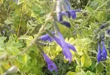 深蓝鼠尾草又名洋苏叶,[别名]尼加拉瓜鼠尾草,称瓜拉尼鼠尾草,是其学名音译。为唇形科多年生植物,成株高80厘米,盆栽30-50厘米,开蓝紫色至粉紫色花,有香味,叶有浓郁的香味。花可用来泡茶,…全部>>