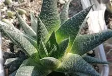 条纹十二卷 Haw.)是芦荟科十二卷属植物,为多年生肉质草本植物。植株高度10-15厘米,其呈莲座状生长;叶片紧密轮生在茎轴上,柔软多汁,呈长三角状披针形,极肥厚;叶面光滑、扁平,色深绿;叶背突起,…全部>>