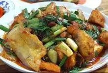 回锅肉,是四川传统菜式中家常菜肴的代表菜之一,属于川菜。其制作原料主要有猪后臀肉、青椒、蒜苗等,口味独特,色泽红亮,肥而不腻。回锅肉起源四川农村地区。古代时期称作油爆锅,四川地区大部分家庭都会制作。…全部>>