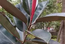 印度榕,别名橡皮树,桑科榕属多年生常绿乔木植物。株高30米;树皮灰白色,平滑;叶厚革质,长圆形或椭圆形,叶柄粗,托叶膜质,深红色;榕果成对生于落叶枝叶腋,卵状长椭圆形,…全部>>
