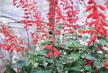 一串红,又称爆仗红、象牙红,为唇形科鼠尾草属植物。花序修长,色红鲜艳,花期又长,适应性强,为中国城市和园林中最普遍栽培的草本花卉。原产巴西、南美洲。喜温暖和阳光充足环境。不耐寒,耐半阴,忌霜雪和高温,…全部>>