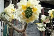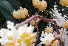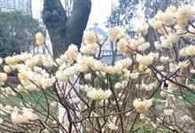 结香是瑞香科结香属落叶灌木。又名岩泽兰、三桠皮、三叉树、蒙花、山棉皮等。高约0.7-1.5米,小枝粗壮,褐色,常作三叉分枝,幼枝常被短柔毛;叶在花前凋落,长圆形,披针形至倒披针形,先端短尖,…全部>>