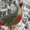 血雉雉科血雉属鸟类,别名血鸡、松花鸡,血雉的雄鸟大覆羽、尾下覆羽、尾上覆羽、脚、头侧、腊膜为红色,故称血雉。其别名甚多,各地皆异。在甘肃,因其胸侧和翅上覆羽沾绿,被称为“绿鸡”;因其羽毛形似柳叶,…全部>>