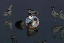 绿翅鸭是小型鸭类,体长37厘米,体重约0.5千克。嘴脚均为黑色。雄鸟头至颈部深栗色,头顶两侧从眼开始有一条宽阔的绿色带斑一直延伸至颈侧,尾下覆羽黑色,两侧各有一黄色三角形斑,在水中游泳时,极为醒目。…全部>>