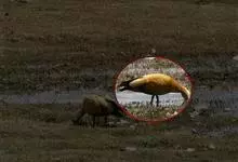赤麻鸭体型较大,体长51-68厘米,体重约1.5千克,比家鸭稍大。全身赤黄褐色,翅上有明显的白色翅斑和铜绿色翼镜;嘴、脚、尾黑色;雄鸟有一黑色颈环。…全部>>