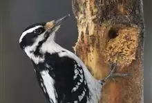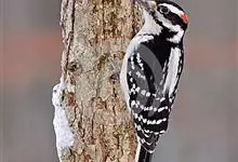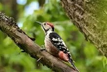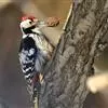小斑啄木鸟,是啄木鸟科、啄木鸟属的小型鸟类,体长14-18厘米。额和颊白色,头顶雄鸟红色,雌鸟黑色。后颈至上背黑色,下背白色而具黑色横斑。两翅黑色具白色横斑。尾黑色,外侧尾羽具白色横斑。下体灰白色,…全部>>