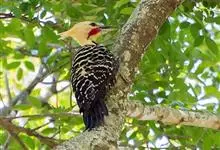 棕腹啄木鸟为啄木鸟科,啄木鸟属是中等体型的鸟类,体长约20厘米。头顶部具红色斑带。脚强健,有趾4个,其中2个向前,2个向后,各趾的趾端均具有锐利的爪,巧于攀登树木。尾羽的羽干刚硬如棘,…全部>>