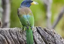 绿拟啄木鸟为鴷形目,须科,拟啄木属的一种。形较大拟啄木鸟略小,体长约260mm。头、颈及胸浅褐而具淡黄白色条纹;喉几为淡黄白色;身体余部草绿色。虹膜棕褐色,眼周裸露部黄色;嘴峰角黄色;跗跖和趾角黄…全部>>