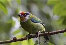 金喉拟啄木鸟,是须鴷科、拟啄木鸟属的鸟类。金喉拟啄木鸟为小型鸟类,体长19-24厘米。额深红色,头顶金黄色,后枕具一大块深红色斑,耳羽和头侧银灰色,上体草绿色,颏和上喉金黄色,下喉淡银灰色,…全部>>