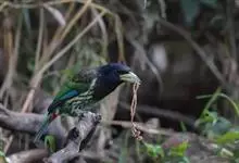 黑眉拟啄木鸟,为须䴕科、拟啄木鸟属的小型鸟类,体长20-25厘米,外形和金喉拟啄木鸟非常相似,但具粗著的黑色眉纹,头侧和耳覆羽以及下喉蓝色而不为银灰色,前颈两侧各有一块鲜红色斑。全部>>