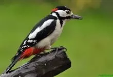 大斑啄木鸟隶属鸟纲鴷形目啄木鸟科。雄鸟头顶黑色,枕部红色,眼先、颊部和耳羽白色,颈部污白色,下嘴基部至后颈有1道黑色条纹并与从颈侧延伸到胸侧的黑色条带相连,背和两翼黑色,肩部具1个大的白色斑块,…全部>>