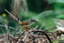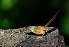 黑喉山鹪莺:体长16厘米,是一种长尾的褐色鹪莺。具明显的白色眉纹及形长的尾。特征为胸具黑色纵纹。上体褐色,两胁黄褐,腹部皮黄;脸颊灰,具明显的白色眉纹及形长的尾。无下髭纹,下体少黑色。虹膜浅褐色,…全部>>