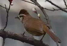 白颊噪鹛是雀形目噪鹛科噪鹛属鸟类,又称土画眉、小画眉、小噪鹃。成鸟额至头顶栗褐色,长眉纹、眼先和颊纹棕白色,眼后至耳羽深褐色,…全部>>