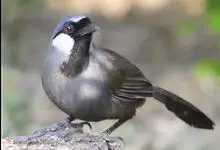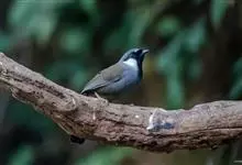 黑喉噪鹛是噪鹛属鸟类。体长24-29厘米,体重75-90克。雄鸟前额、眼先、眼周和眼后纹以及颊、须和喉黑色;黑色前额和蓝灰色头顶之间有道白色细斑;颈侧具椭圆形白斑,…全部>>