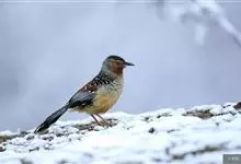 大噪鹛:中型鸟类,体长32-36厘米。额至头顶黑褐色,背栗褐色满杂以白色斑点,斑点前缘或四周还围有黑色。初级覆羽、大覆羽和初级飞羽具白色端斑。尾特长,均具黑色亚端斑和白色端斑。颏、喉棕褐色,…全部>>