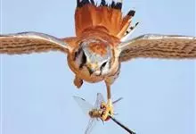 红隼:是隼科、隼属的小型猛禽之一。体重173-335克,体长305-360毫米。翅狭长而尖,尾亦较长,外形和共同爪隼非常相似。雄鸟头蓝灰色,背和翅上覆羽砖红色,具三角形黑斑;腰、尾上覆羽和尾羽蓝灰色,…全部>>