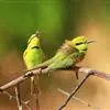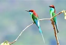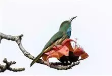 蓝颊蜂虎:是蜂虎科、蜂虎属的鸟类,共有2个亚种。体长27-33厘米,翼展46-49厘米,体重38-50克。嘴形细长而下弯,先端尖,…全部>>