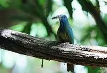 蓝须夜蜂虎是佛法僧目、蜂虎科的鸟类,体长约30厘米,是绿色林栖型蜂虎,蓝色的胸羽蓬松,嘴厚重而下弯。成鸟顶冠淡蓝,腹部棕黄带绿色纵纹。尾羽腹面黄褐。亚成鸟全身绿色。喉、胸部中央的羽甚长和亮色;该物种…全部>>