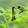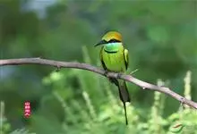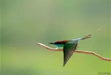 绿喉蜂虎是佛法僧目、蜂虎科的小型鸟类,共有9个亚种。身长22-25厘米,翼展29-30厘米,体重15-20克。喉绿色,额部、头顶至上背为锈红色,其余上体均为亮绿色。中央尾羽延长且端段狭细,…全部>>