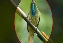蓝喉蜂是蜂虎科蜂虎属鸟类。体长26-28厘米,嘴长而弯曲,有明显细长的中央尾羽。头部、颈部和背部为巧克力色,有黑色眼纹。喉部、腰部和尾羽为蓝色。腹部和两翼为绿色。幼鸟外观似成鸟,头部、颈部和背部为绿色,…全部>>