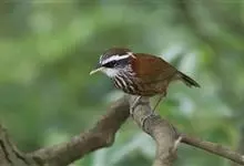 褐胁雀鹛,是莺科、雀鹛属的鸟类。褐胁雀鹛是小型鸟类,体长13-15厘米。头顶棕褐色,黑色侧冠纹和宽阔的白色眉纹,眼先黑色。上体包括两翅和尾橄榄褐色。颏、喉、胸、腹白色,腹和胸沾皮黄色,两胁橄榄褐色,…全部>>
