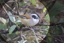 金胸雀鹛是莺科、雀鹛属小型鸟类,体长10-11厘米。头黑色,头顶中央有一道白色中央冠纹,颊和耳羽亦为白色,在黑色的头部极为醒目。上体深灰沾绿。两翅黑色,外侧飞羽有黄色外缘和白色端斑;尾凸状、黑色。…全部>>