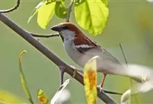 山麻雀:小型鸟类,体长13-15厘米。雄鸟上体栗红色,背中央具黑色纵纹,头棕色或淡灰白色,颏、喉黑色,其余下体灰白色或灰白色沾黄。雌鸟上体褐色具宽阔的皮黄白色眉纹,颏、喉无黑色。…全部>>