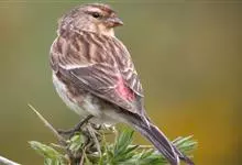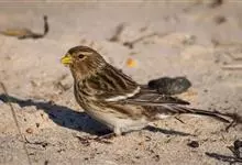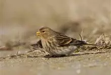 黄嘴朱顶雀:为燕雀科金翅雀属的鸟类。体重10-18克,体长112-162毫米。是一种体型小的褐色具纵纹的雀鸟。腰粉红或近白。与其他朱顶雀的区别在头顶无红色点斑,体羽色深而多褐色,尾较长,叫声也不同。…全部>>