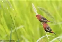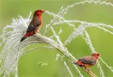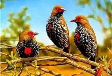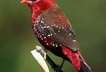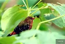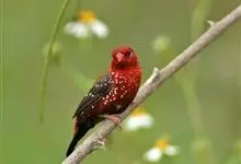 红梅花雀小型鸟类,体长9-10厘米。雄鸟通体朱红色,背、肩、胸等满布白色小斑点,两翅和尾黑褐色均具白色端斑,嘴红色,脚蜡黄色。雌鸟上体淡褐色或赭褐色,翅上中覆羽、大覆羽和内侧飞羽末端具白色斑点,…全部>>