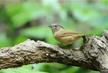 褐脸雀鹛是雀眉科、雀鹛属型鸟类,体长15-17厘米。头顶褐灰色具黑色侧冠纹,头侧皮黄褐色。上体和两翅表面橄榄褐色,尾褐色。下体浅茶黄色。虹膜灰色或褐色,嘴蓝灰色;嘴峰黑色,下嘴灰色,脚淡灰色。…全部>>