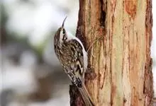 旋木雀是旋木雀科旋木雀属的一种动物。小型鸟类,体长12~15厘米,平均重10克。嘴长而下曲,上体棕褐色具白色纵纹,腰和尾上覆羽红棕色,尾黑褐色,外翈羽缘淡棕色,翅黑褐色,翅上覆羽羽端棕白色,…全部>>