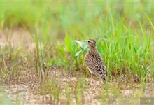 云雀,是雀形目百灵科云雀属鸟类。云雀上体大都砂棕色,各羽纵贯以宽阔的黑褐色轴纹;上背和尾上覆羽的黑褐纵纹较细,棕色因而较显著;后头羽毛稍有延长,略成羽冠状;两翅覆羽黑褐,…全部>>