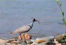 鹮嘴鹬体长40厘米,是一种灰、黑及白色鹬。识别特征为腿及嘴红色,嘴长且下弯。一道黑白色的横带将灰色的上胸与其白色的下部隔开。翼下白色,翼上中心具大片白色斑。幼鸟上体具皮黄色鳞状纹,黑色斑纹不甚清楚,…全部>>