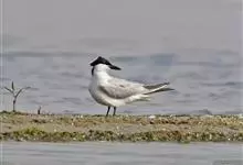 鸥嘴噪鸥,中型水禽,体长31~39厘米。夏羽额、头顶、枕和头的两侧从眼和耳羽以上黑色。背、肩、腰和翅上覆羽珠灰色。后颈、尾上覆羽和尾白色,中央一对尾羽珠灰色。尾呈深叉状。冬羽头白色,头顶和枕缀有灰色…全部>>