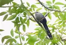 黄嘴杜鹃:成鸟体长26-30厘米,体重55-56克。有一条长长的尾巴,上面是棕色,下面是黑色和白色相间,下颌至鸟喙有带黄色的一个黑色弧形。主要以昆虫为食,尤其喜吃鳞翅目幼虫,如松毛虫,树粉蝶幼虫、蛾…全部>>