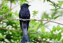 乌鹃:是杜鹃科、乌鹃属的小型鸟类,体长23-28厘米,通体黑色,尾呈浅叉状,尾下覆羽和外侧尾羽具白色横斑,在黑色的尾部极为醒目。下体黑色,微带蓝色或辉绿色。虹膜褐色或绯红色,嘴黑色,脚灰蓝色。…全部>>
