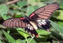 玉斑凤蝶Papilio helenus 别名白纹凤蝶,是凤蝶科凤蝶属美凤蝶亚属大型种类。雌雄同型;体翅皆黑色,后翅正面中室外有3个并列的白色斑,亚外缘有1列模糊的新月形红色斑,…全部>>